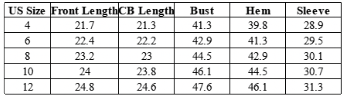 (Size chart in images)