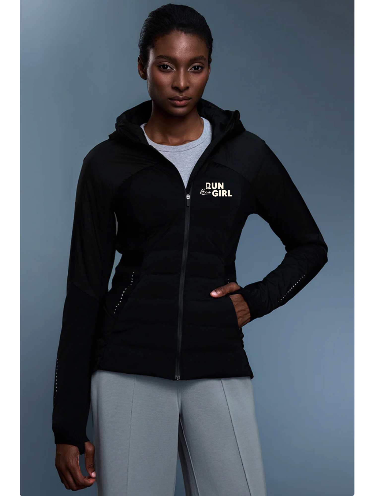 Created to keep you on the go with every brisk movement! A fun combination of stretchy for freedom of movement and fit with warm down panels to keep the core cozy!