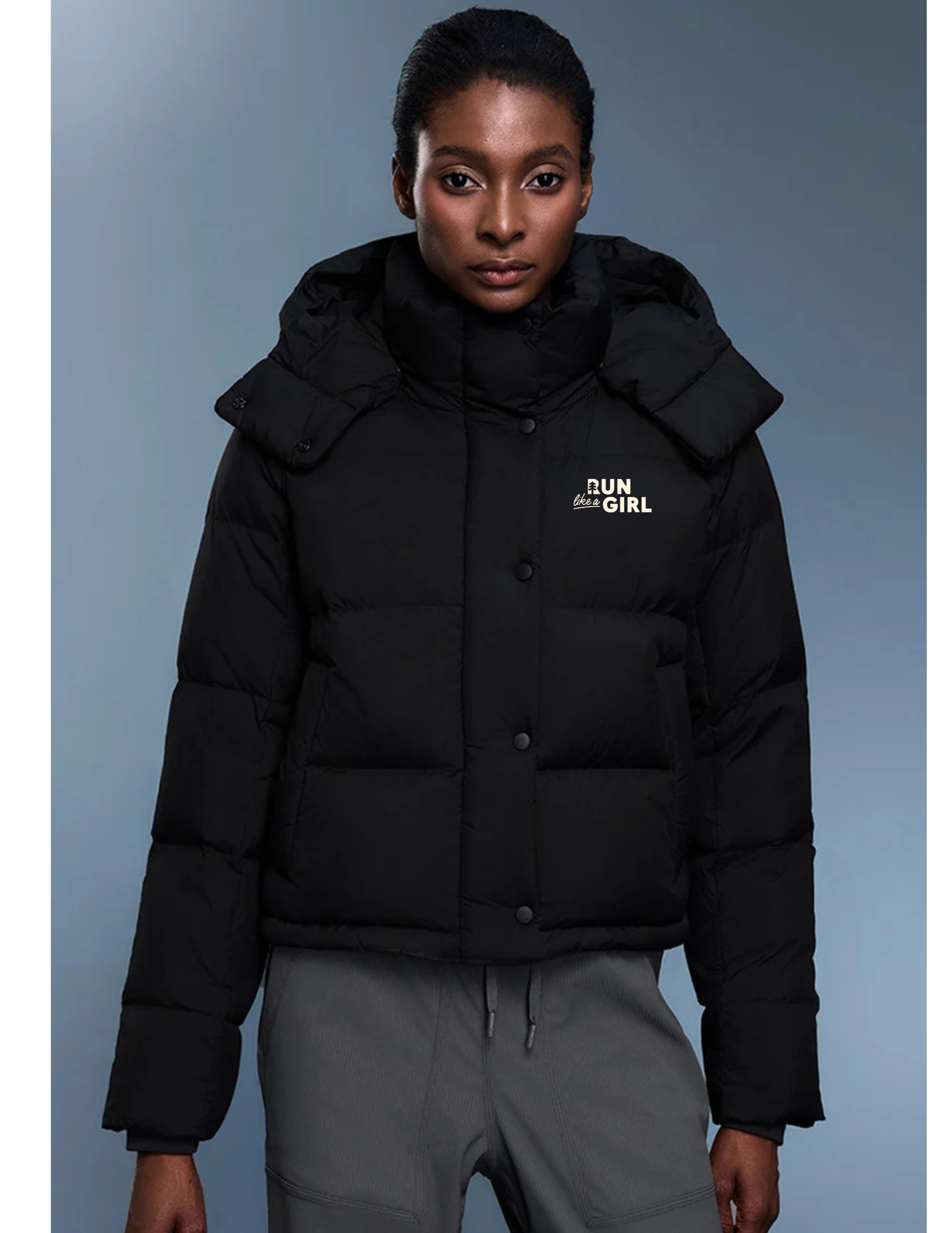 Warm and puffy! Full of fluffy! This is the one... the coat that is going to keep you warm! This one has a shorter waist length and a removable hood option!